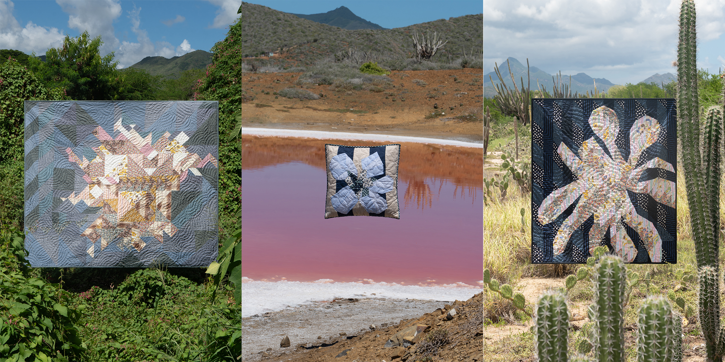 Every item showcases a commitment to craftmanship and the repurposing of high-quality fabric- a testament to care, enduring design, and a loving practice of art. The precise beauty of the plants featured in this round of quilts was captured by Alfredo Piola on Margarita Island, Venezuela.