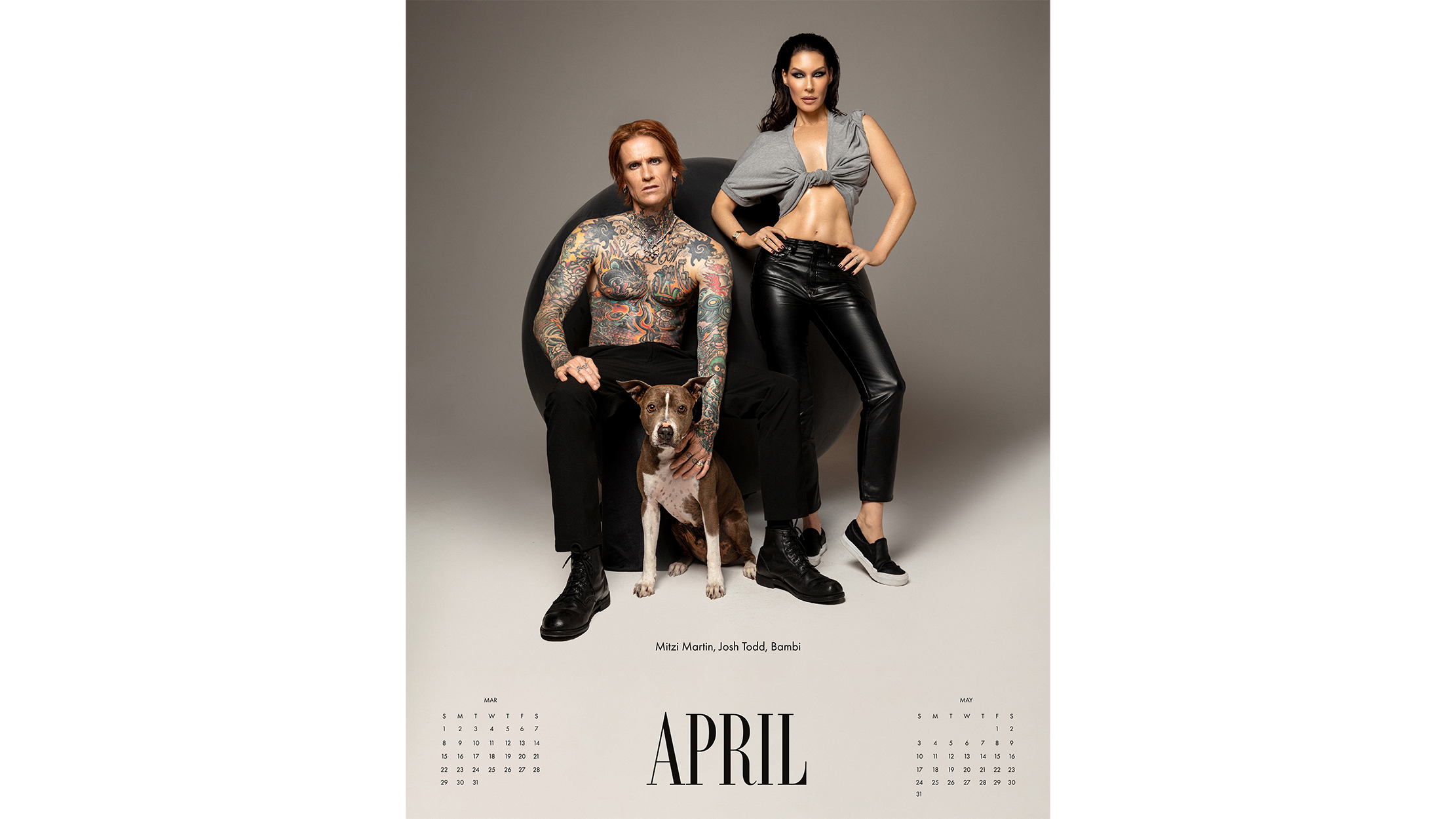 Yes, there is a bitter sweet moment that continues to bring tears to my eyes. Bambi, the rescue who appears in the month of April with supermodel Mitzi Martin and rock star Josh Todd, sadly and unexpectedly crossed the rainbow bridge shortly after the shoot. I’m so happy that I was able to celebrate her life by dedicating the calendar to her this year.
