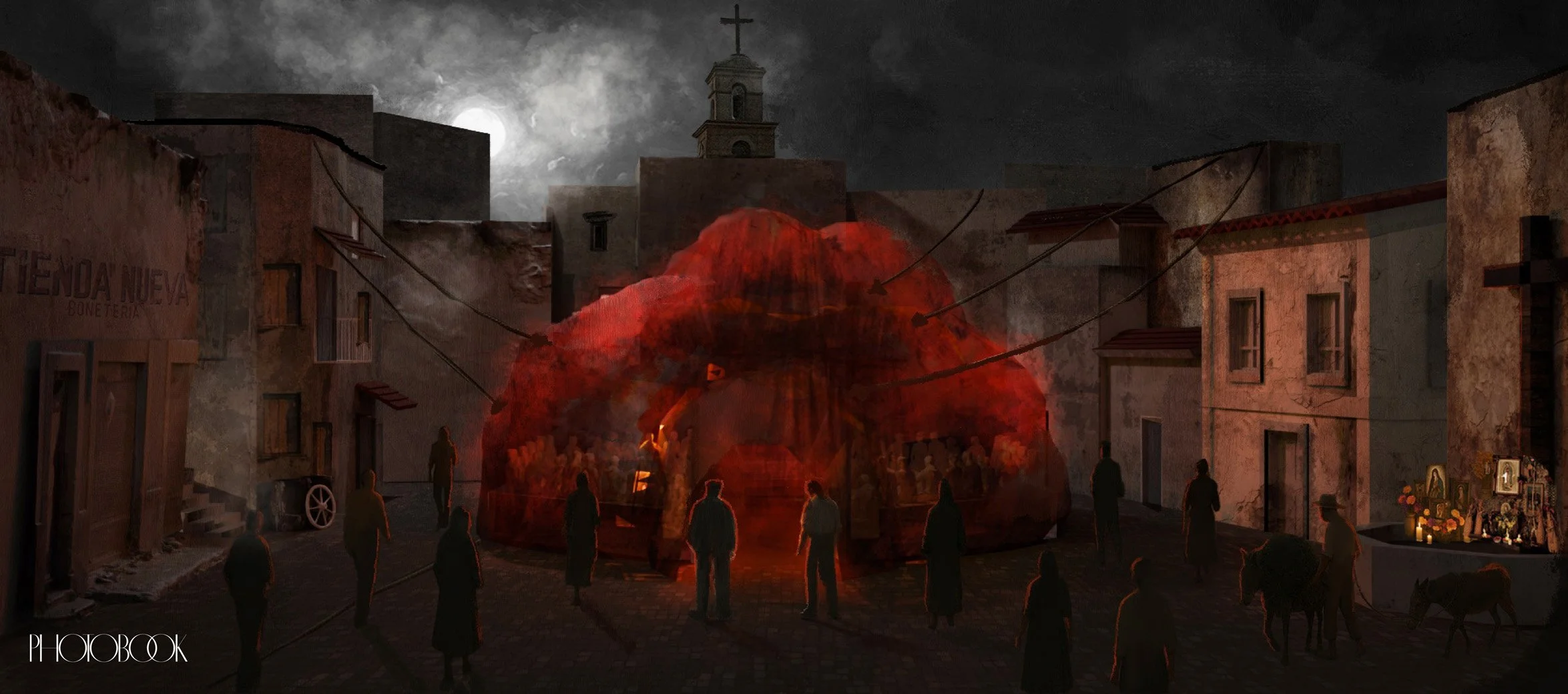 As a result of this pivot, Peña has worked on productions and TV shows brimming with skilled and accomplished creatives. His most recent accomplishments involve designing his first feature, working on a large scale Netflix show, and joining United Scenic Artists (USA 829). And his architecture degree has not gone to waste. Notably, Peña tells PhotoBook Magazine that his architecture background gives him the ability to shape concepts through sketches, technical drawings, models, and renderings, and to see space itself as a narrative element.