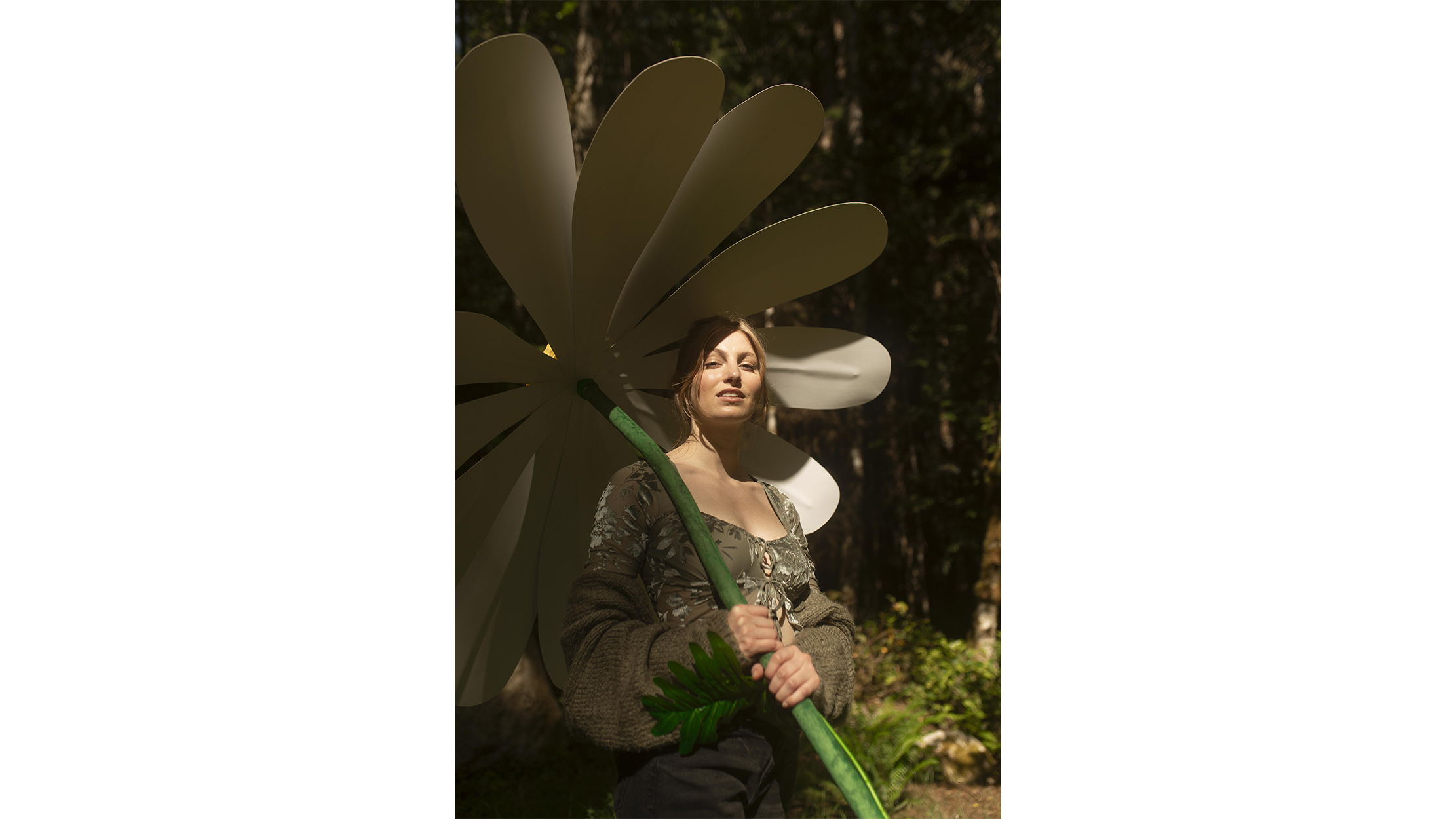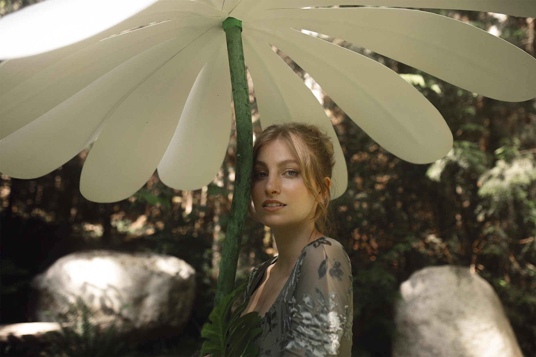 I think for all of the EP, I really wanted to have that kind of nature theme throughout because that was such an influential thing in my life and my writing. I love that a lot of the visuals for this kind of have me out in nature, whether that's a backyard or the middle of a forest. As well, I think that the track itself, "Running From Nothing," was kind of representing this realization and reframing that we're so infinitesimal in this giant universe, and that helps you to not overthink so much. I kind of like the idea of some of the visuals reflecting that, like having these giant flowers in "Wait a Minute" or having these giant fruits in "Running From Nothing." I like this idea of having these big pieces that kind of represent us being smaller.