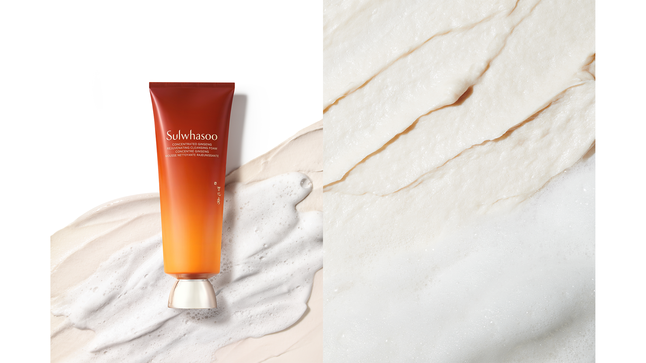 Sulwhasoo's new formula prioritizes the skin's delicate moisture barrier. The experience begins with a velvety cream that transforms into a weightless, “cloud-like” foam as it comes in contact with your skin and water. The result is a refreshed, balanced complexion that feels clean and hydrated.