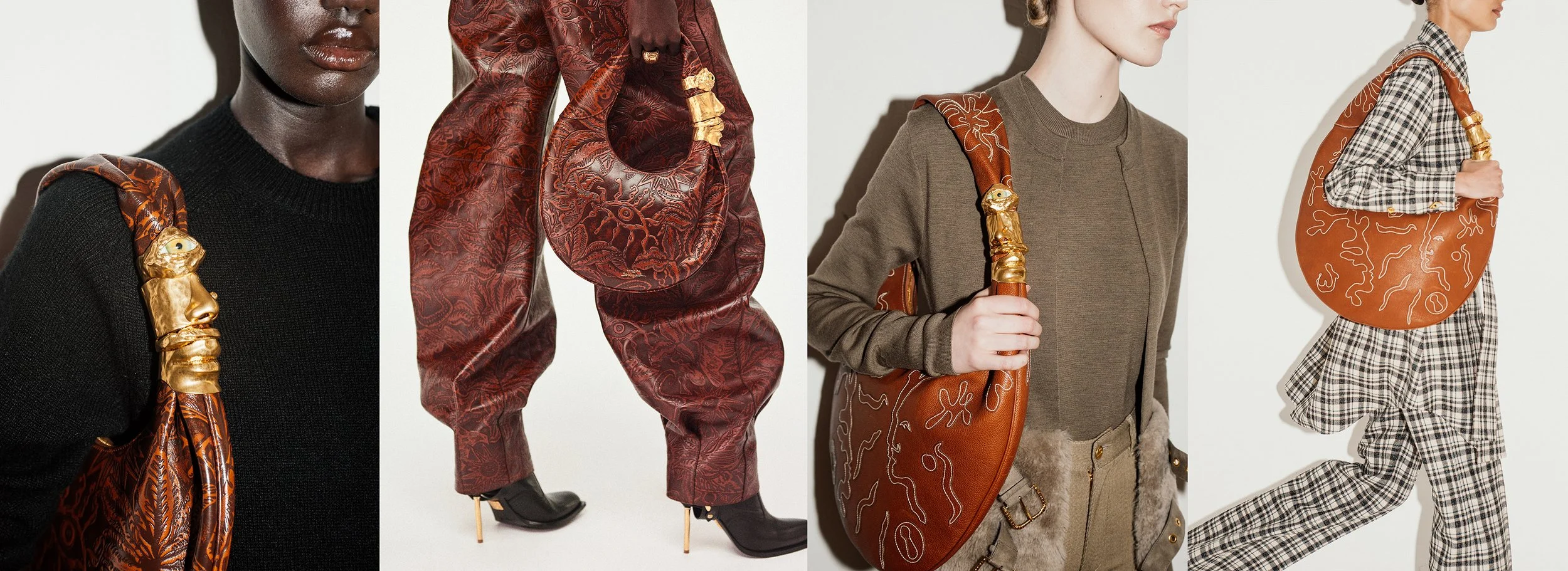 Following the tone of the Fall/Winter 2025-2026 Ready-to-Wear collection, Daniel Roseberry has constructed new seasonal variations of the careful and bold Soufflé bag. With an inspired vision and amazing use of different shades of black, brown, and gold, these bags are a rightful favorite of the season.